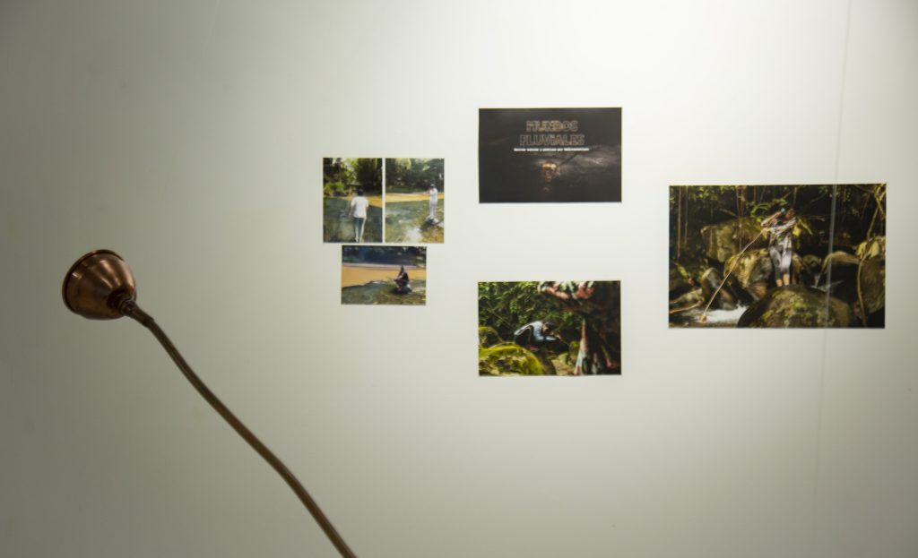 La desobediencia corporal que emergió en la composición de los espacios se produjo de manera ontológica. Implicó un desplazamiento: de pensar la subjetividad como una red de relaciones situada en una historia hacia un territorio y una comunidad. La segunda apertura se desplegó de manera expandida: si el cuerpo es territorio, entonces siente, recuerda. El suelo devino en testigo y cómplice. Estx cuerpx-tierra, en duelo por la colonización, la guerra y el extractivismo, se convirtió en un espacio de siembra para el arte como acción viva. En este tránsito se crean otros modos de estar. En la obra de Laura Victoria Cuéllar, Hidrófono Análogo. Serie Tecnologías para la escucha del agua (2023), buscando la poética del origen, se instaló entre la sensibilidad y el artefacto como medio para capturar la respiración de la tierra en el agua, en el río que fluye como una constante del tiempo, oyendo el territorio desde lo más ancestral.