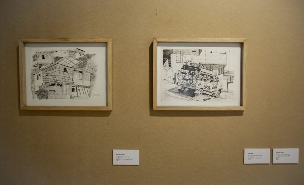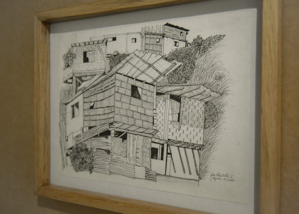 Casa de Esterilla y La Guala, Ana Elida Ortiz Saldarriaga, 24.5 cm x 35 cm, Rapidógrafo sobre papel Durex. 2018. Fotografía Cortesía Instituto Departamental de Bellas Artes-María del Mar Castro.