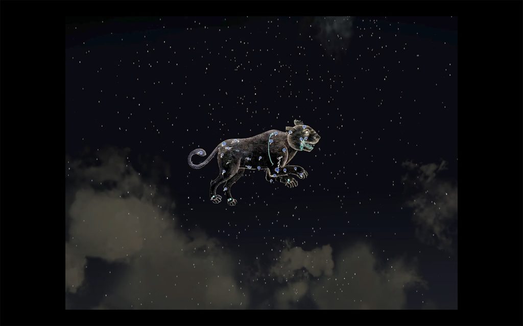The installation operates across immense spatial and temporal scales, confronting human experience with centuries of accumulated civilization. By weaving together ancestral knowledge, constellation-based navigation, and fictional flights over Eastern Mediterranean cities, the work draws the spectator into a temporal continuum where past, present, and imagined futures cohabit. Shaneen captures this with eloquence: